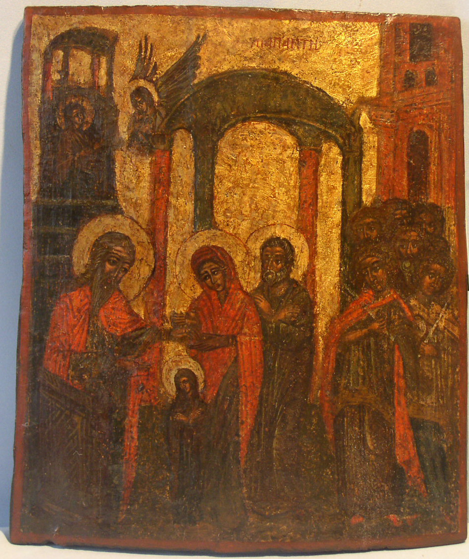 Einführung Mariens in den tempel.Nordgriechisch-mazedonisch,17.Jahrhundert (1640-1690).32,5x28cm.Restaurierter Goldgrund und Ausbesserungen an den Gewändern.Seltene Darstellung.Frühe Ikone,Sammlerstück!
