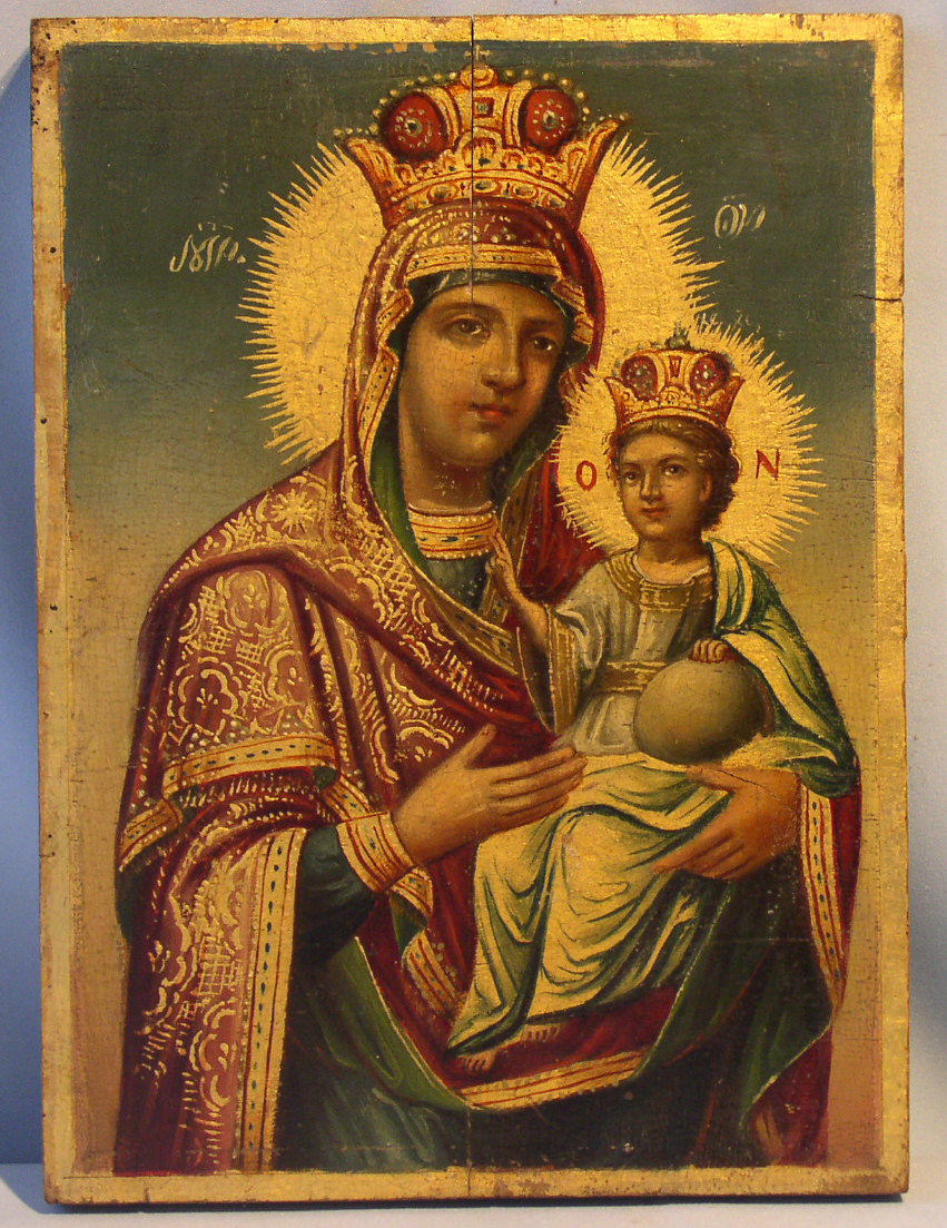 Gottesmutter Iwerskaja.Russisch-ukrainisch,19.Jahrhundert (1850-1880).32x23cm.Sehr gut erhaltene und dekorative Goldgrundikone-keine Restaurierungen.Sammlerstück!