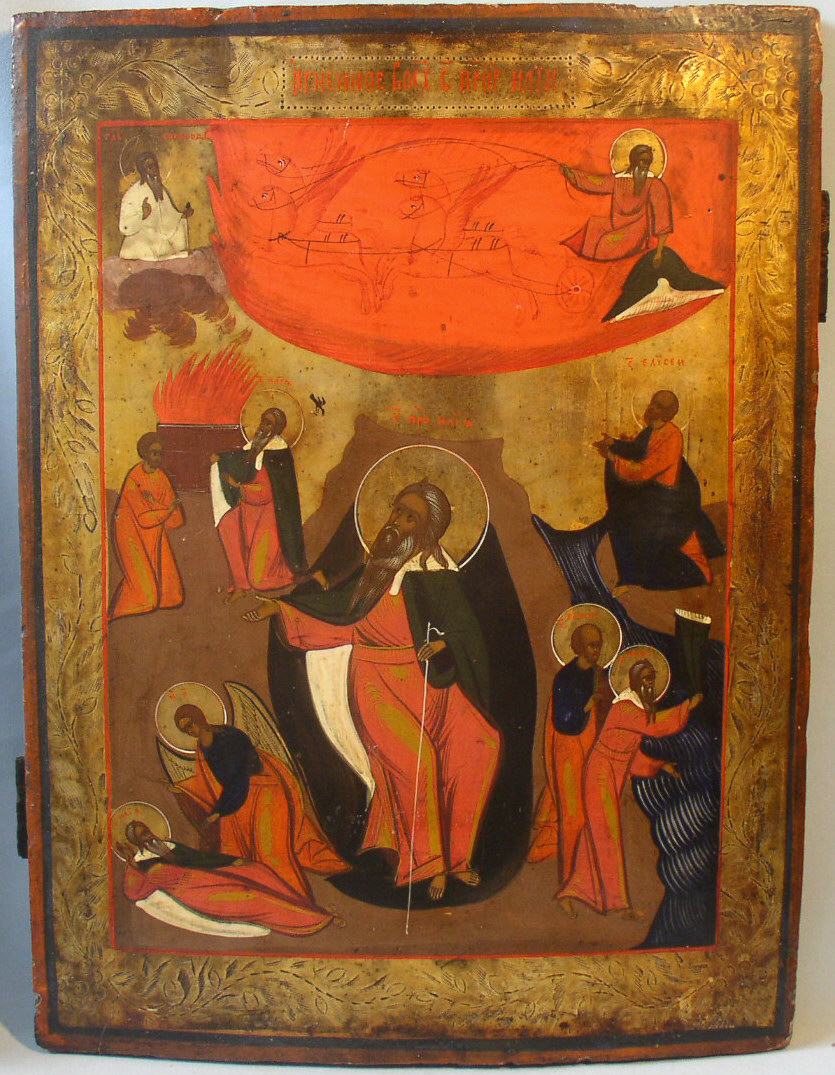 Heiliger Elias mit Szenen aus seinem Leben.Südrussisch,19.Jahrhundert.44x33cm.Gut erhalten,minimal restauriert.