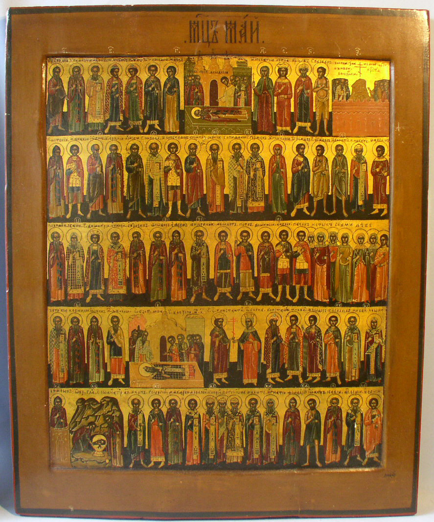 Alle heiligen des Monates Mai.Russisch,um 1900.54x44cm.Ungewöhnlich grosse Monatsikone in bester Erhaltung.