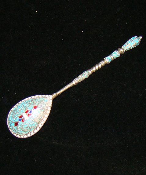 Teelöffel aus Silber mit Email.Russisch,um 1881.Silberstempel 84,Marke PO 1881 (kyrillisch),Stadtmarke von Moskau.Guter Zustand.11cm lang. Detail-Photos auf Anfrage.
