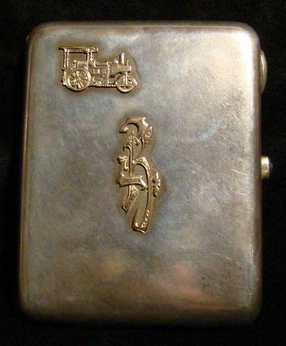 Zigarettendose aus Silber mit Gold-Applikationen.Russisch,um 1900.Innen vergoldet und mit vielen Namensinschriften.Länge 11,5cm.Gewicht ca.210 Gramm.