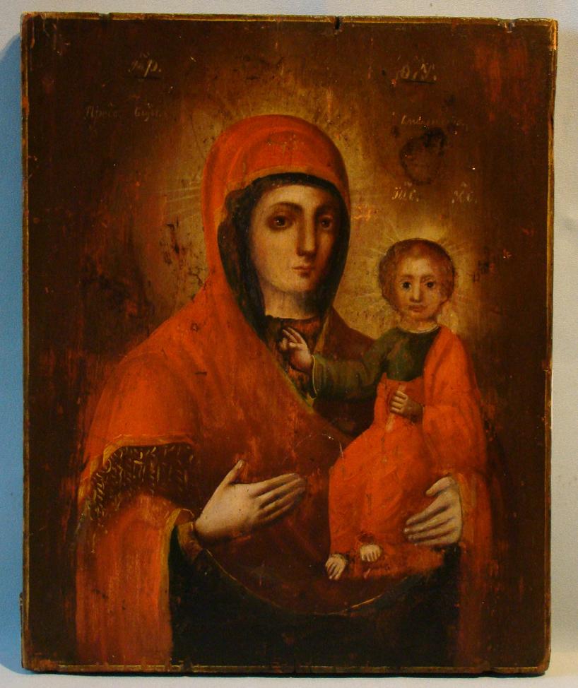 Gottesmutter Smolenskaja.Russisch-ukrainisch,19.Jahrhundert (um 1850-1880).31x26cm.Gut erhaltene Hausikone.