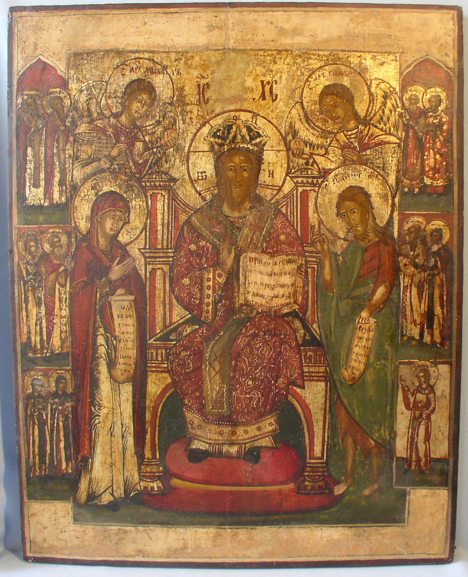 Deesis.Nordwestrussisch,um 1800.Viele Randheilige.Imponierendes Sammlerstück.62x50cm.