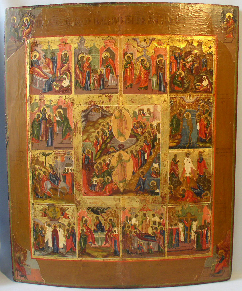 Festtagsikone.Zentralrussische Altgläubigenarbeit,19.Jahrhundert (um 1800-1850).54x44cm.