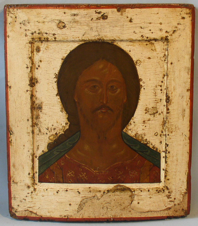 Christus das grimme Auge.Zentralrussisch um 1600.Mit einigen Restaurierungen.31x27cm.Sammlerstück!