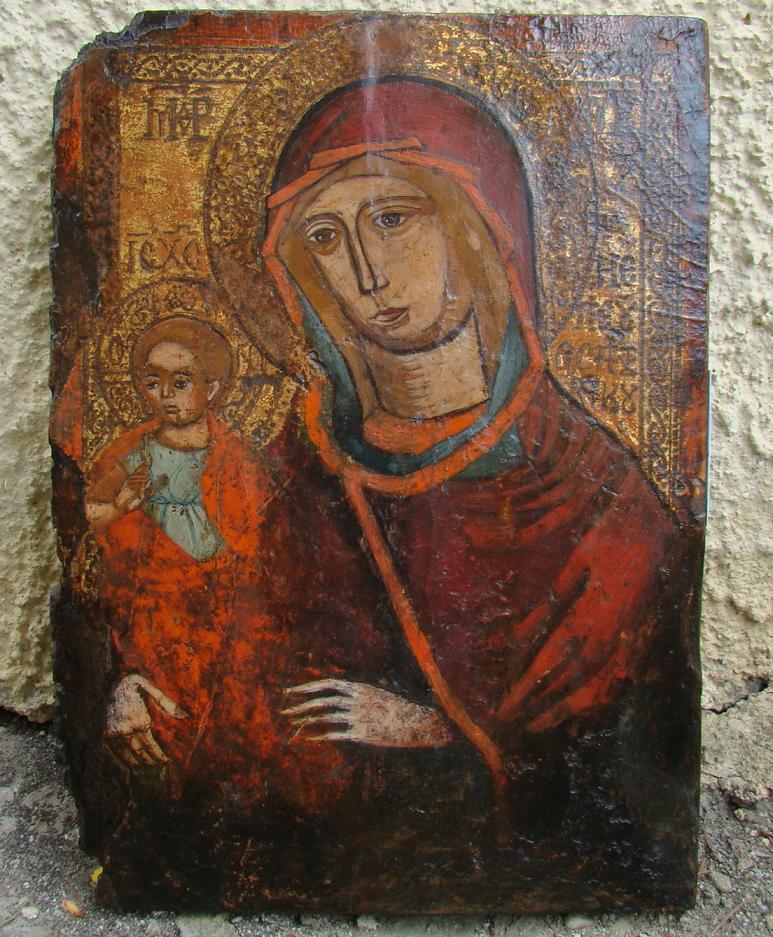 Muttergottes Madre della Consolatione.Balkan-Adria Gebiet,18.Jahrhundert (1750-1800).Restaurierter Mittelriss und Randschäden.34x25cm.Reizvolle Adria-Arbeit.