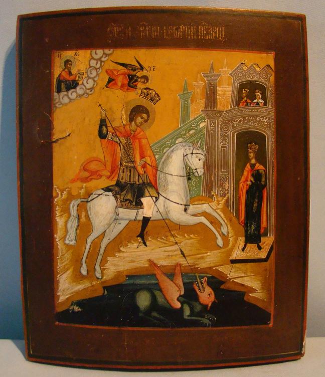Heiliger Georg,den Drachen tötend.Zentralrussisch,um 1850.27x22cm.Gute Qualität und Erhaltung.Ein Sammlerstück!