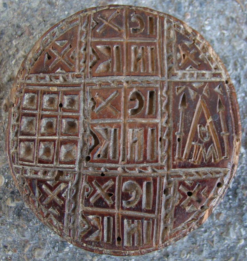Brotstempel.Russisch,19.Jahrhundert.Durchmesser 9cm.Mit christlichen Symbolen und Schriftzeichen zur Segnung des Brotes (wurde vor dem Backen in den Brotteig gedrückt).