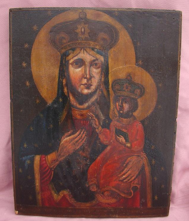 Gekrönte Gottesmutter Hodigitria.Russisch,18.Jahrhundert (um 1760-1800).Einige alte Restaurierungen.Am unteren Rand eine schlecht leserliche Inschrift.36x28cm.
