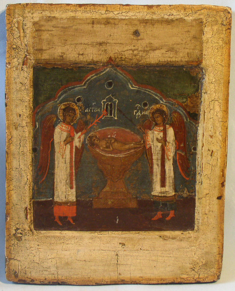 Sehet das Lamm Gottes.Nordrussisch,spätes 16.Jahrhundert.26x20cm.Gering restauriert.Sehr seltenes Thema.Sammlerstück!