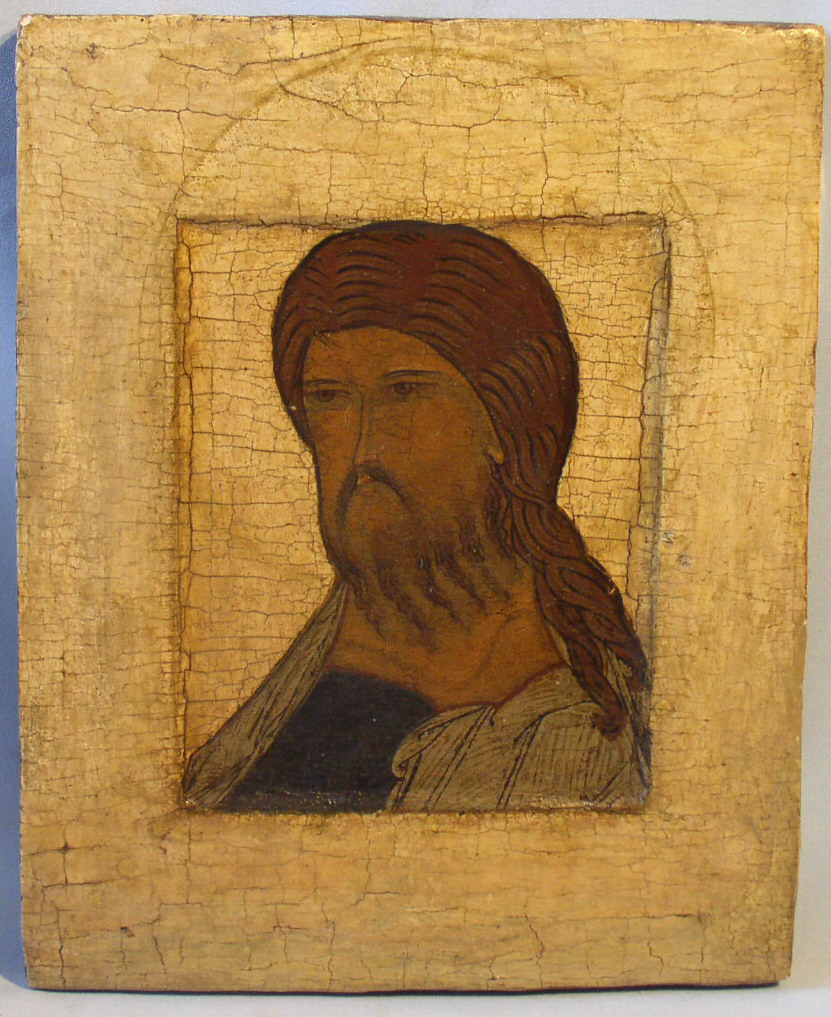 Johannes der Täufer.Zentralrussisch,um 1500.Gering restauriert.27x22cm.Freigelegter Rand&Hintergrund.Bedeutendes Sammlerstück!