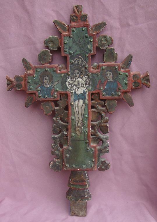 Doppelseitiges,geschnitztes Kreuz.Bulgarien/Serbien oder Rumänien,18./19.Jahrhundert.Seltenes Sammlerstück! 48x31,5cm.