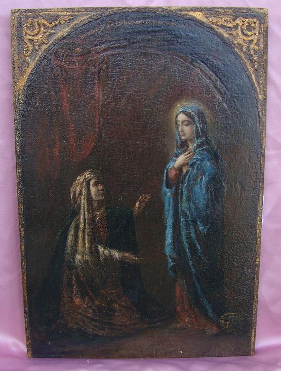 Besuch ( Erscheinung) der Gottesmutter bei der Heiligen Elisabeth.Russisch,19.Jahrhundert (um 1840).Petersburg oder Umkreis.41x28cm.Seltenes Sammlerstück!