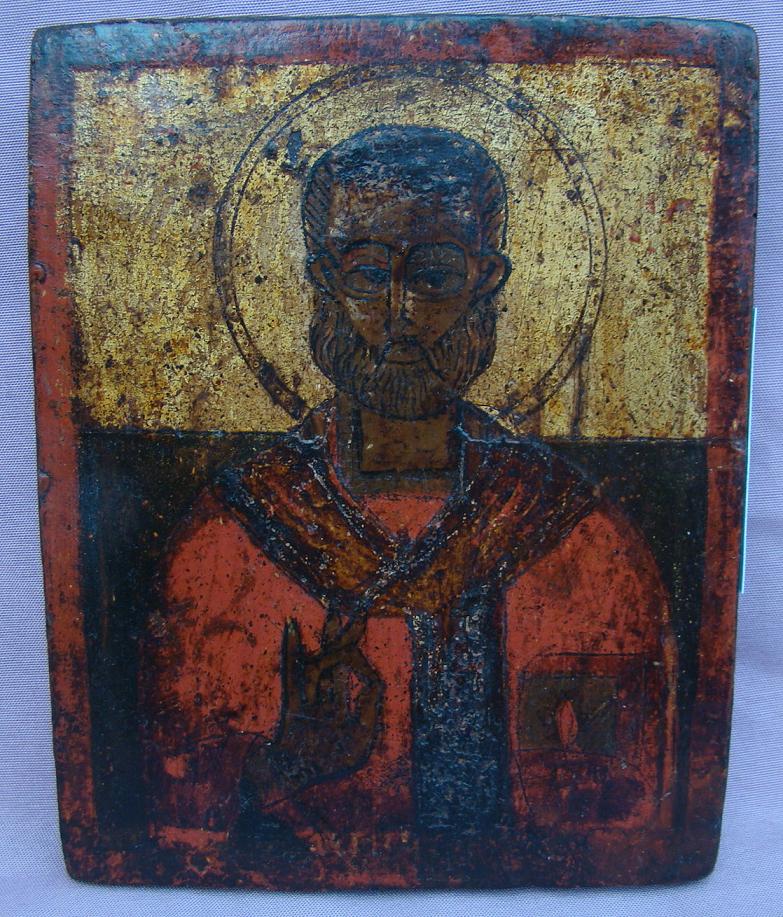 Heiliger Nikolaus.Griechisch,um 1700.Rustikale Ikone.18x14,5cm.