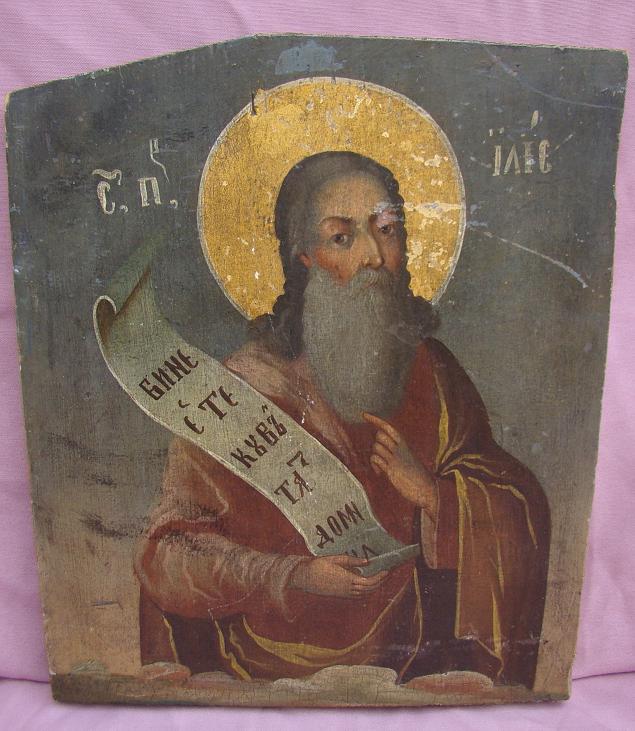 Prophet Elias mit der Schriftrolle.Rumänisch,um 1800.Oben beschnitten (wohl zum Einbau in eine Ikonostase).34x28cm.
