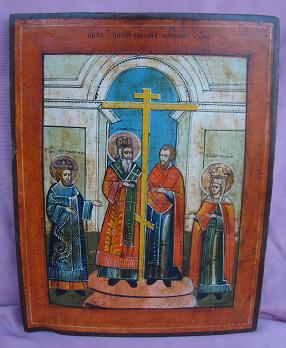 Kreuzerhöhung.Südrussisch,19.Jahrhundert (um 1850-1870).33x25cm.Dekorative Hausikone.