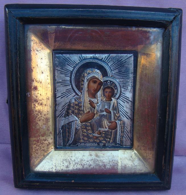 Gottesmutter von Smolensk.Russisch,Ende 19.Jahrhundert.Silberoklad mit 84er Siberstempel und Meistermarke.Mit dem originalen Kiot 15x13cm.