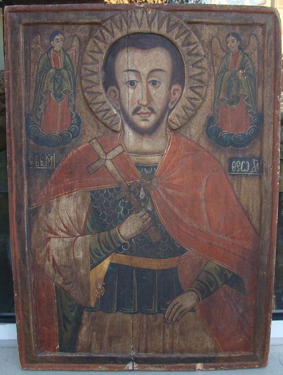 Heiliger Theodor.Nordgriechisch oder Balkan,um 1700-1750.Riesige,gut erhaltene Ikone.90x64cm.