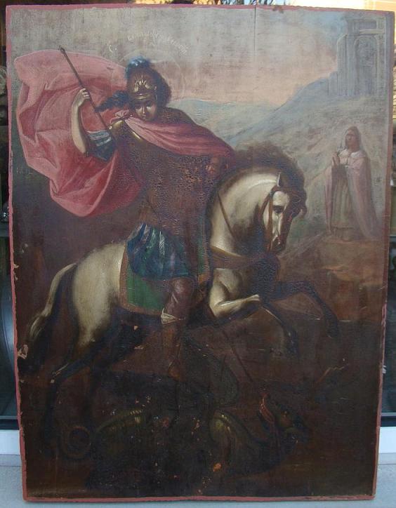 Heiliger Georg,den Drachen tötend.Westrussisch,Mitte 19.Jahrhundert (um 1840-1870).Seltenes Sammlerstück! 83x61cm.