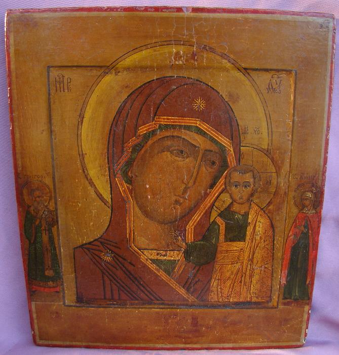Gottesmutter von Kasan.Russisch,19.Jahrhundert (um 1800-1840).Minimale Altersschäden.32,5x27,5cm.Auf dem Rand links der Heilige Gregorius,rechts die Heilige Anna.