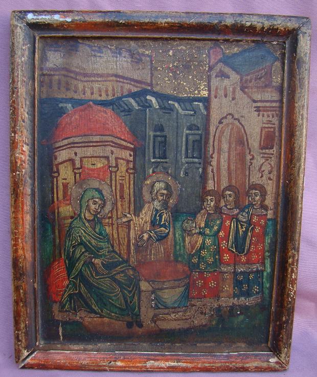 Doppelseitige Ikone Geburt der Maria und Verklärung Christi.Griechisch,um 1800.Minimale Altersschäden.26x20cm.