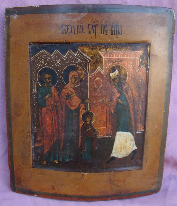 Einführung Marines in den Tempel.Nordrussisch,19.Jahrhundert.30x25,5cm.Gut erhaltene Hausikone.