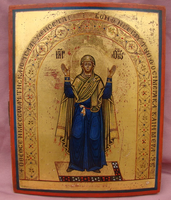 Gottesmutter unzerstörbare Mauer / Oranta.Russisch (Kiew),um 1800.Seltenes Sammlerstück in guter Erhaltung.27x21cm.