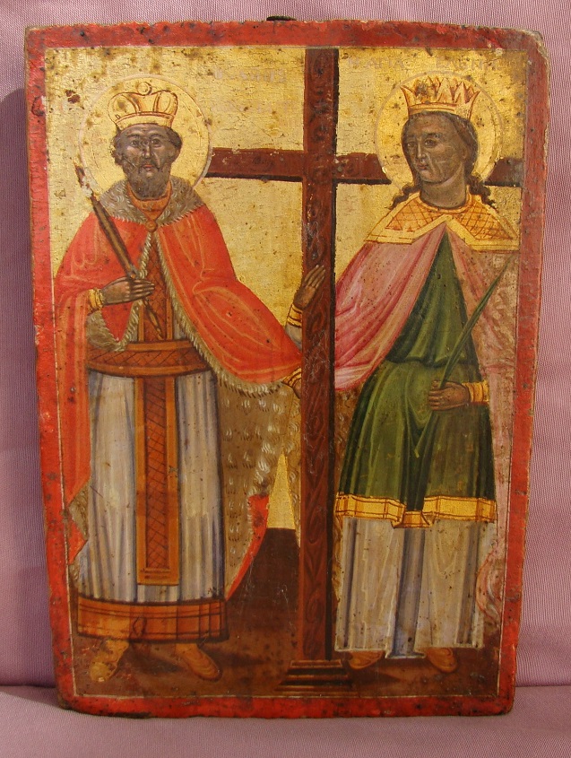 Konstantin und Helena.Griechisch,19.Jahrhundert (um 1820-1850),24,5x17cm.Reizvolle griechische Hausikone.