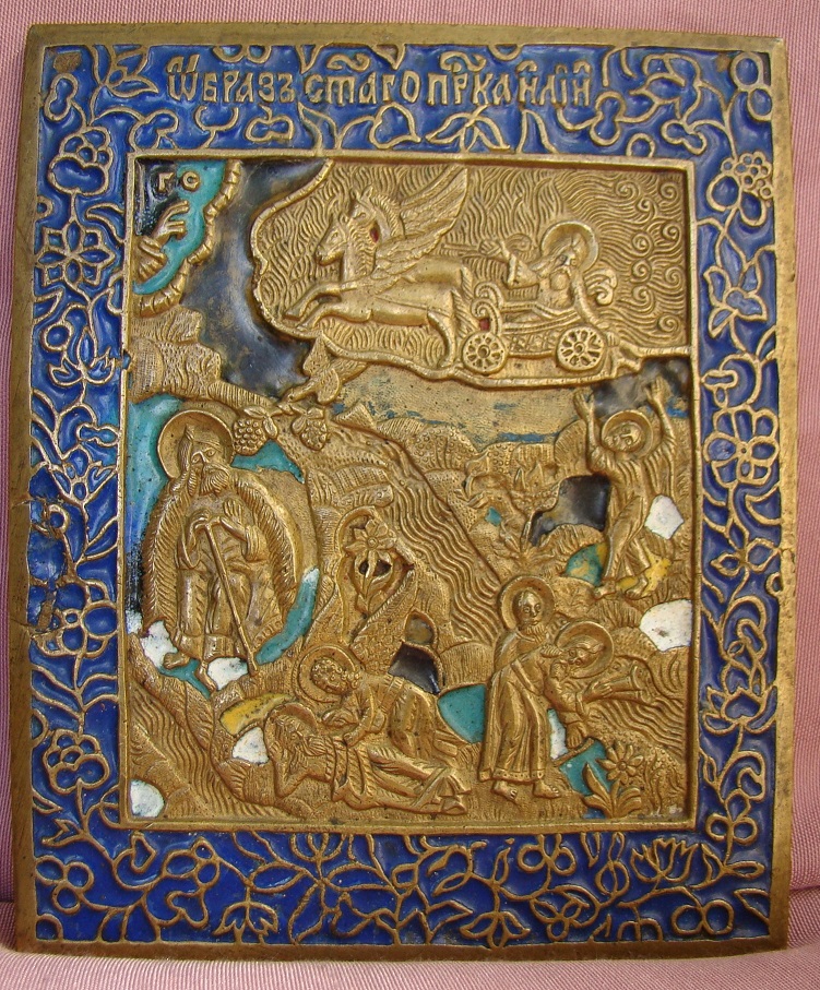 Prophet Elias mit Szenen aus seinem Leben.19.Jahrhundert.Feiner Guss,mehrfarbiges Email.14,3x12cm.