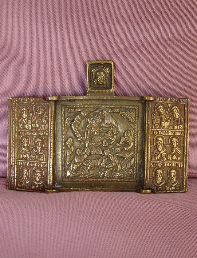 Prophet Elias Triptychon mit Festtagen auf den Flügeln.Um 1800.Aufgeklappt 7x9,5cm.