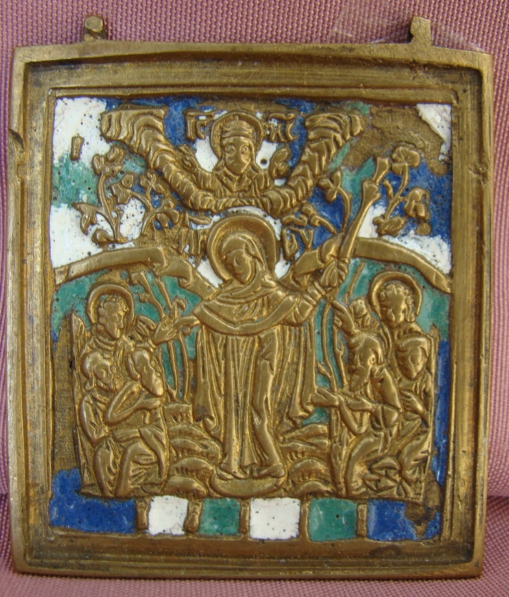 Gottesmutter Trösterin der Leidenden mit mehrfarbigem Email.19.Jahrhundert.6,5x5,6cm.