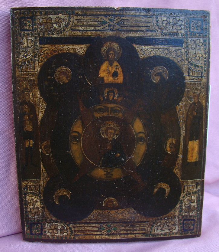 Christus das Allessehende Auge.Russisch.19.Jahrhundert.22,5x18cm.Auf dem Rand 2 nicht mehr identifizierbare Heilige.