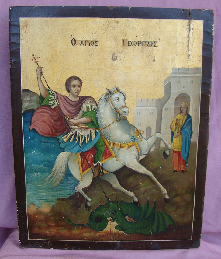 Heiliger Georg,den Drachen tötend.Griechisch,Ende 19.Jahrhundert.40x31,5cm.