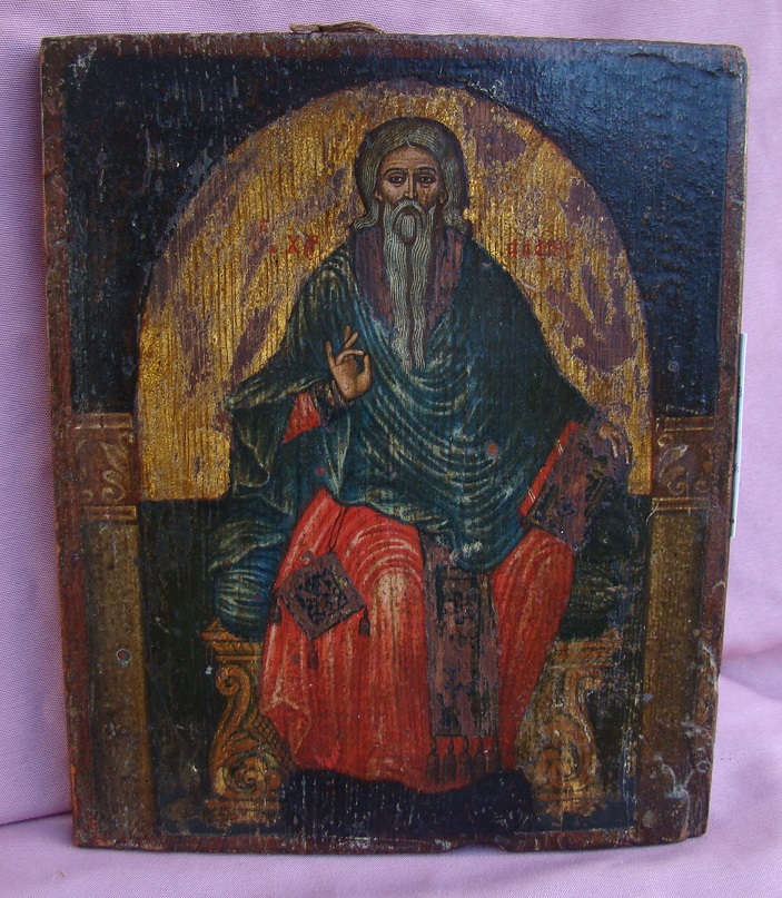 Heiliger Charalampus.Griechisch,um 1800.Reizvolle Ikone in originalem Zustand.23x19cm.