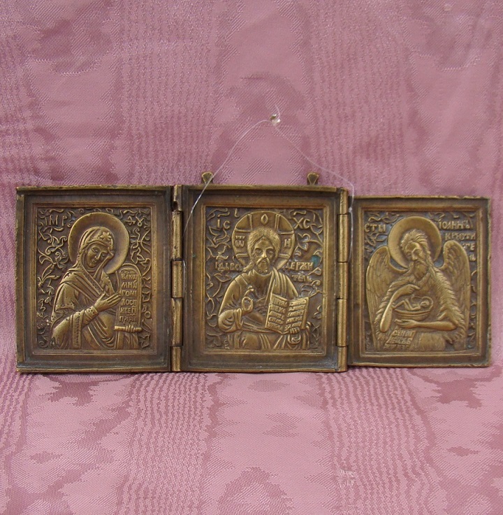 Deesis Triptychon.Russisch,19.Jahrhundert.Geöffnet 8,2x19,2cm.Feiner Guss in guter Erhaltung.