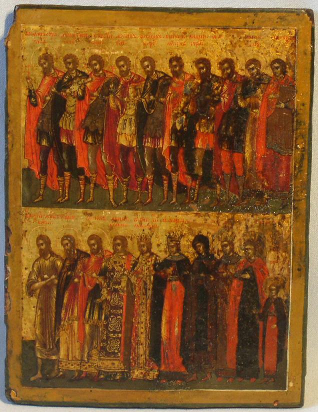 2 Reihen Heilige.Russisch,17.Jahrhundert.17x13cm.Flügel eines Triptychons.Sammlerstück von guter Qualität.