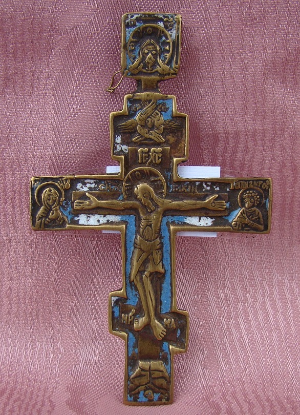 Kleines Kreuz mit Email.Russisch,um 1800.Grösse 10,6x6,4cm.