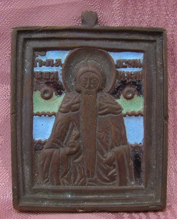 Heiliger Paisij (Paisios der Große) mit mehrfarbigem Email.Russisch,19.Jahrhundert.6,5x5,2cm.