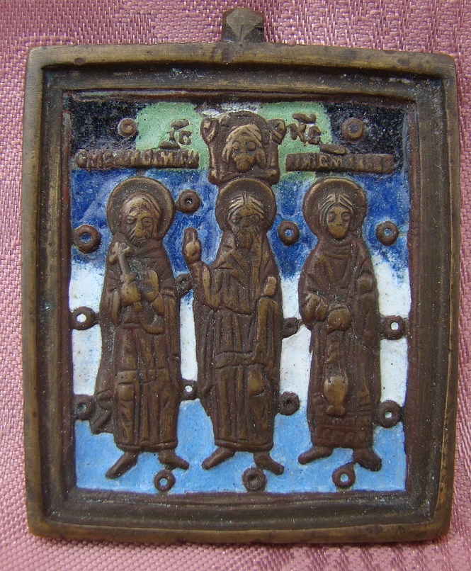 Die 3 Heiratsvermittler Samon,Gurij und Aviv mit merfarbigem Email.Russisch,19.Jahrhundert.5,7x4,7cm.