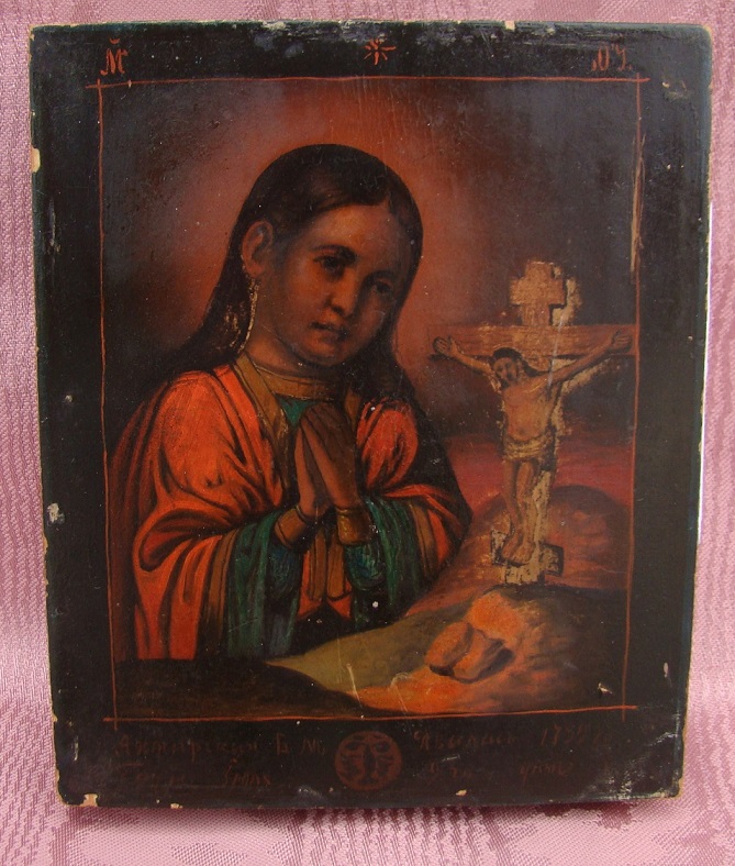 Gottesmutter Achtyrskaja.Russisch,19.Jahrhundert.13,3x11cm.Guter originaler Zustand.