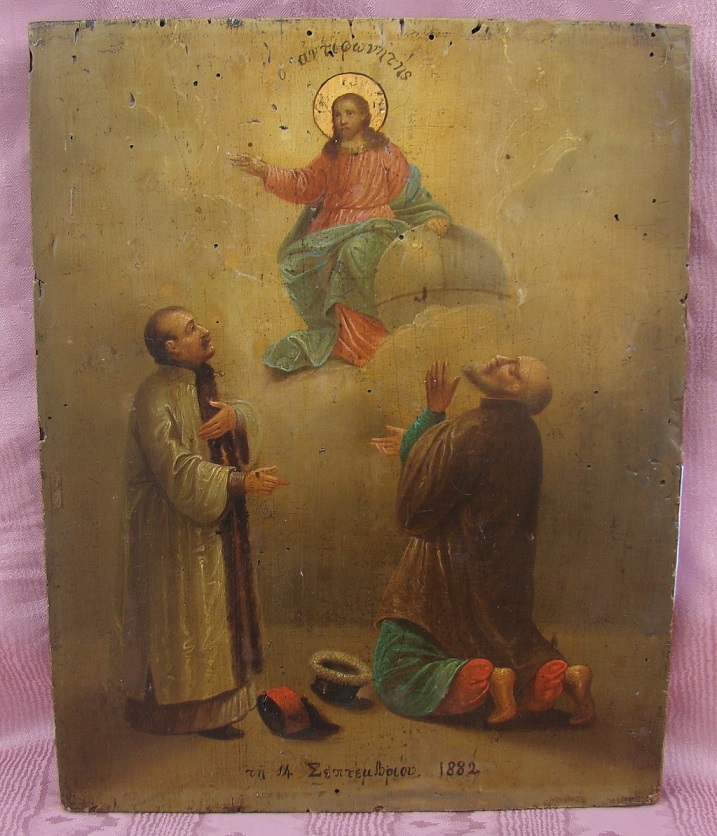 Votiv-Ikone.Griechisch,datiert 14.September 1882.Sehr seltenes Sammlerstück! 32x26m.