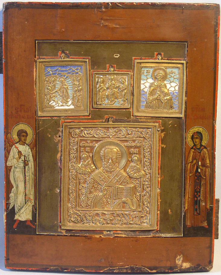 Staurothek Ikone.Originale Bronzen und originale Kombination.Russisch,19.Jahrhundert.27x22cm.Selten!