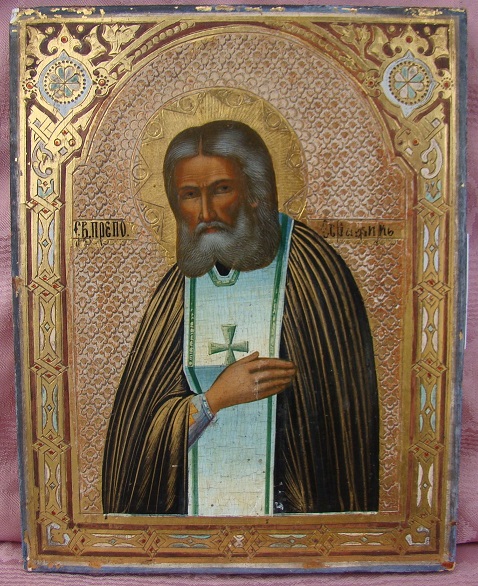 Heiliger Seraphim von Sarow.Russisch,um 1903.Schöne Goldgrund-Ikone.22x17,5cm.