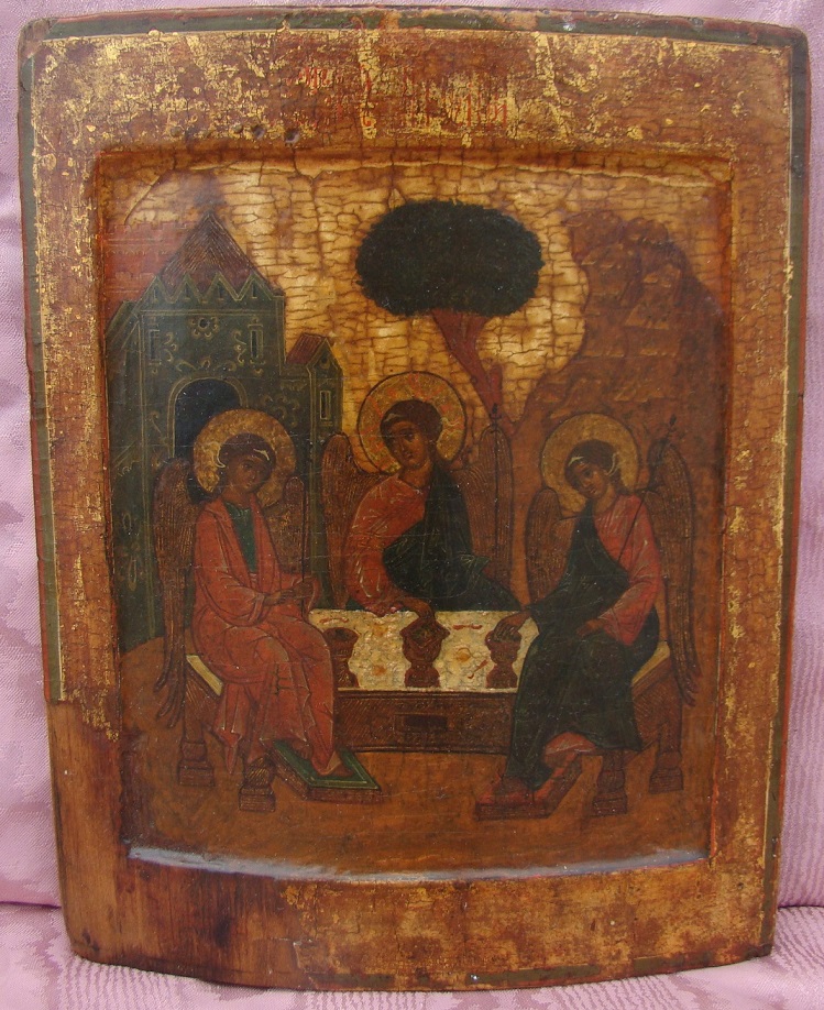 Heilige Dreifaltigkeit,östlicher Typus.Russisch,17.Jahrhundert mit späteren Überarbeitungen.28x23cm.