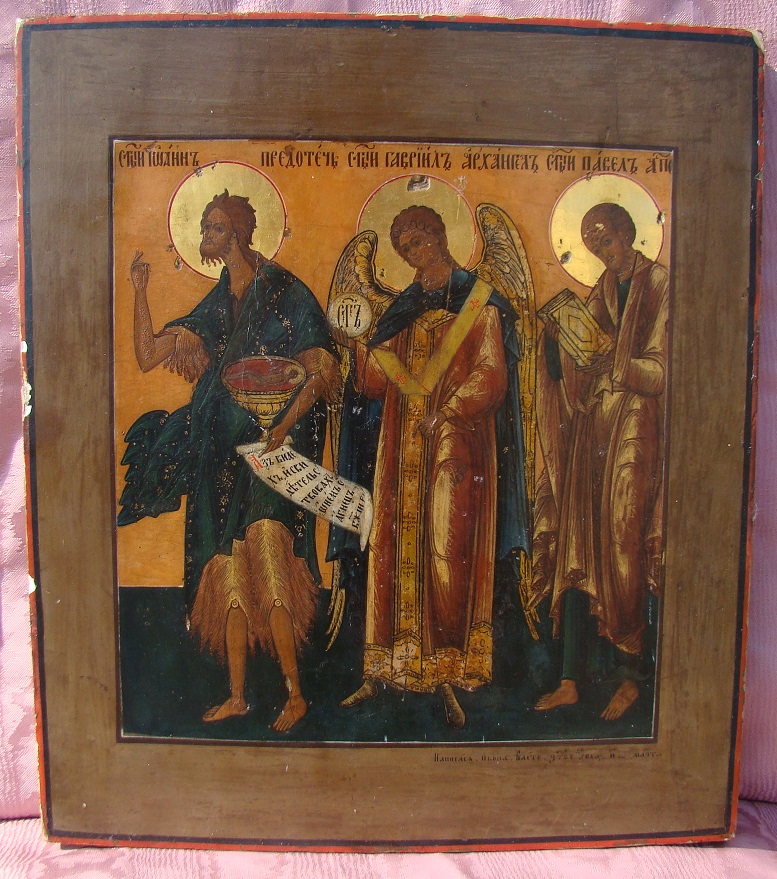 Heiliger Johannes,Erzengel Gabriel & Heiliger Paulus.Russisch,datiert 1866.Sehr gute Qualität der Malerei.35x31cm.Sammlerstück!