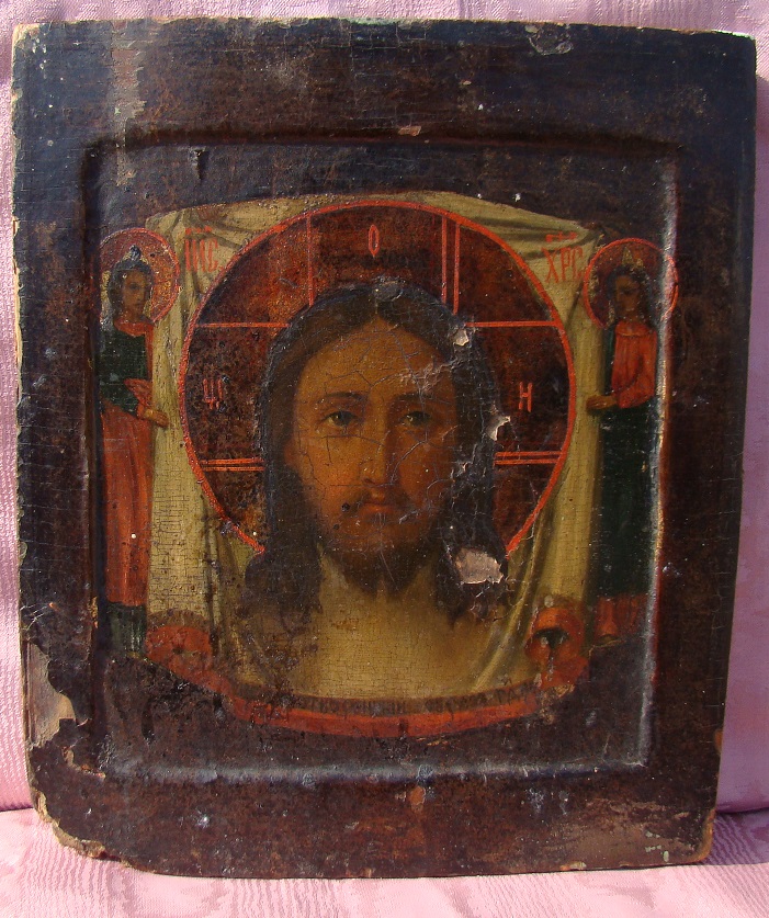 Mandylion Christi.Russisch,19.Jahrhundert.27,5x23cm.Originaler,unrestaurierter Zustand.