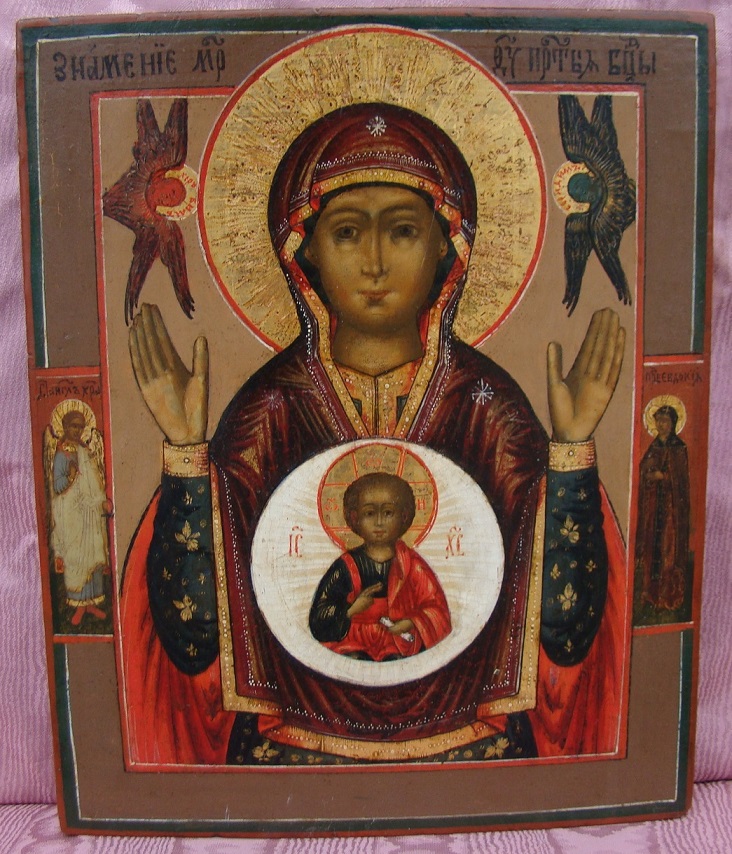 Gottesmutter des Zeichens.Russisch,19.Jahrhundert.Auf dem Rand der Schutzenegel und die Heilige Eudokia.31x25,5cm.Schöne Qualität der Malerei.