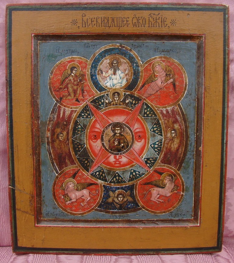 Das allessehende Auge Gottes.Russisch,19.Jahrhundert.35,5x31cm.Schöne Qualität der Malerei,gut erhalten.Sammlerstück!