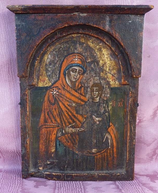 Gottesmutter Hodigitria.Griechisch,18.Jahrhundert.Ehemals Mittelteil eines Triptychons.21,5x16cm.